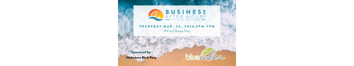 Come enjoy this free networking event for Gulf Breeze Area Chamber members, your spouse/date or any first-time prospective members. Light appetizers and beverages will be provided. Bring your business cards and door prizes.
